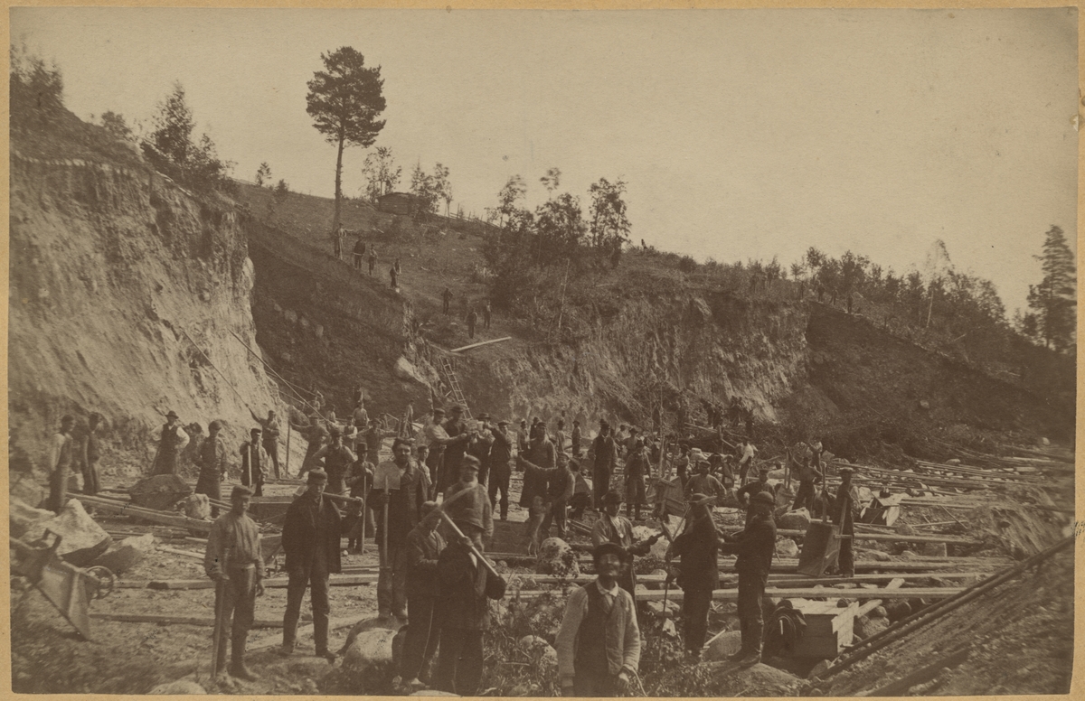 Banbyggnad av Statsbanan Sundsvall - Torpshammar, som byggdes om från smalspårig (1067 mm) till normalspårig (1435mm), när Statens Järnvägar (SJ) köpte upp järnvägen av Sundsvall - Torpshammars Järnväg (STJ) Mellan år 1884 - 1886.