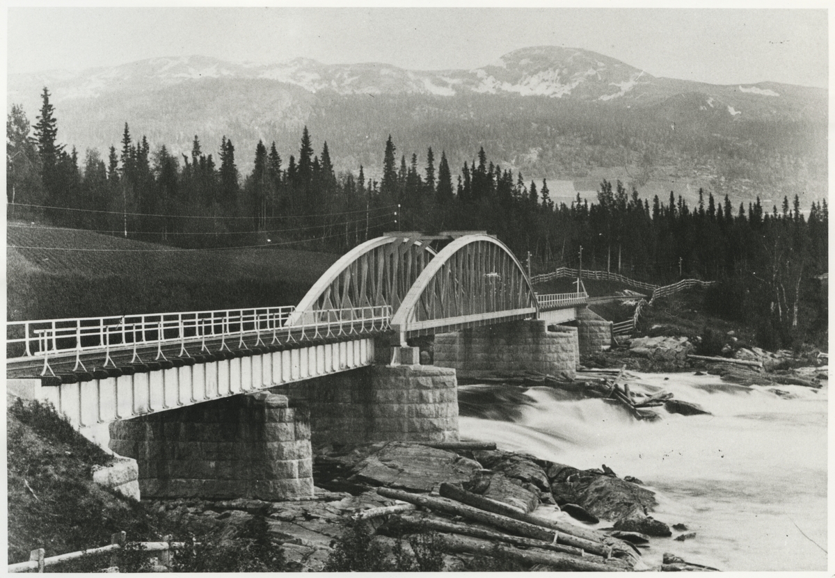 Järnvägsbro över Forsaforsen på linjen mellan Duved och Storlien med Mullfjället i bakgrunden.