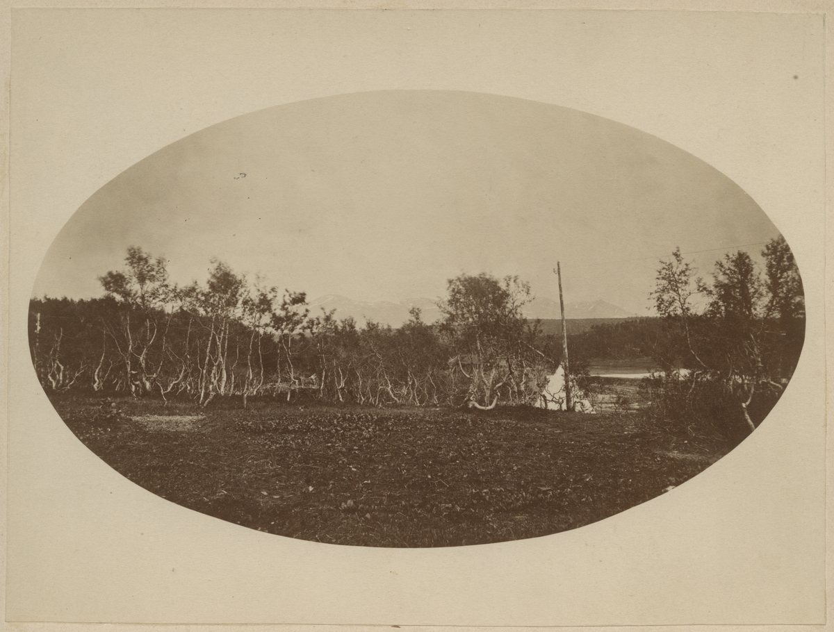 SJs banbyggnad av Linjen Torpshammar- Riksgränsen. (Storlien) Foto är taget vid Snasahögen i Storlien, Juli 1878.