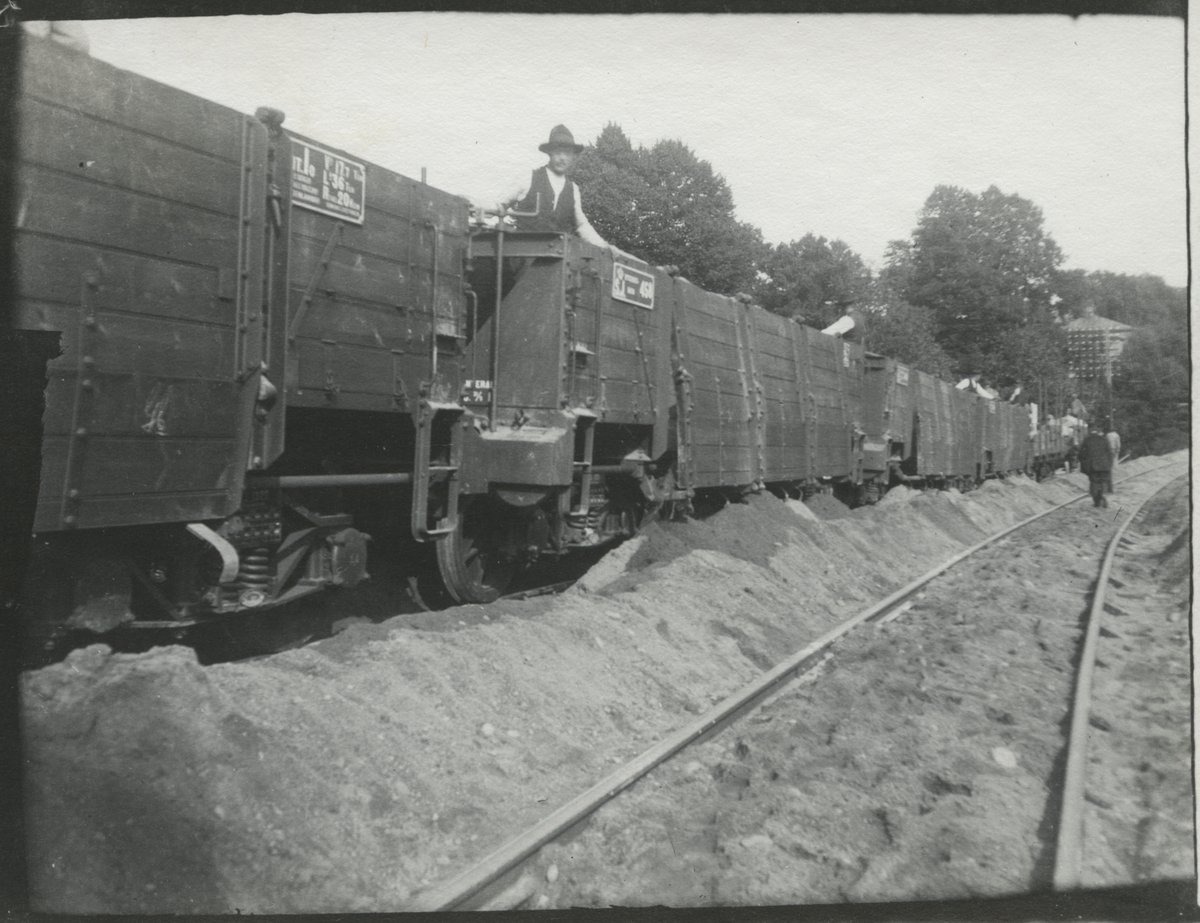 Dubbelspårsbanbyggnad Göteborg - Alingsås, mellan år 1911 - 16. SJ-Godsvagn 458.