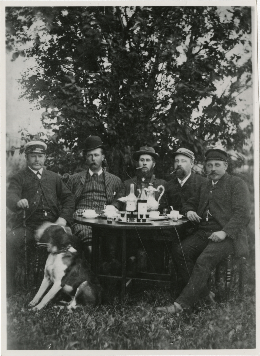 Gruppbild från vänster Stins Hellström Boden, Ingenjörerna Gowans och Mae Kennin, Postmästare Svennson Boden, Assistent Carlsten.