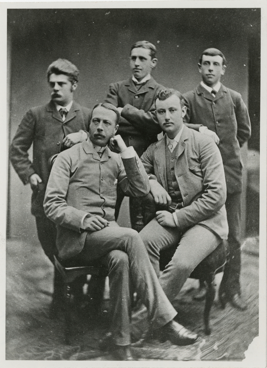 Gruppbild, Ingeniör H. Wennerström med fyra engelska ingeniörer. från vänster Wennerström. William. Broxup Strätt och Jones.