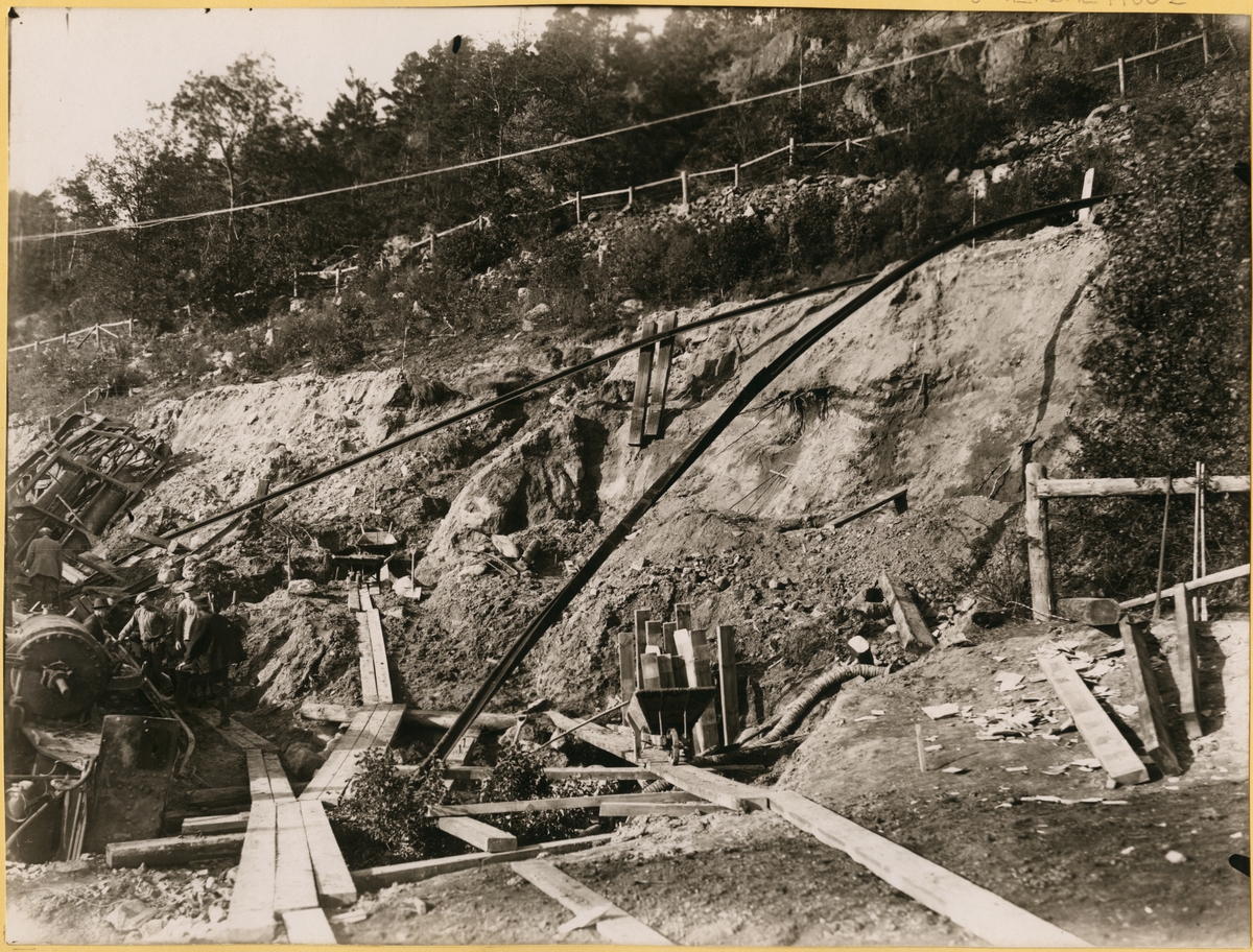 Röjningsarbete i slänten efter jordskredet i Getå som orsakade olyckan den 1 oktober 1918.