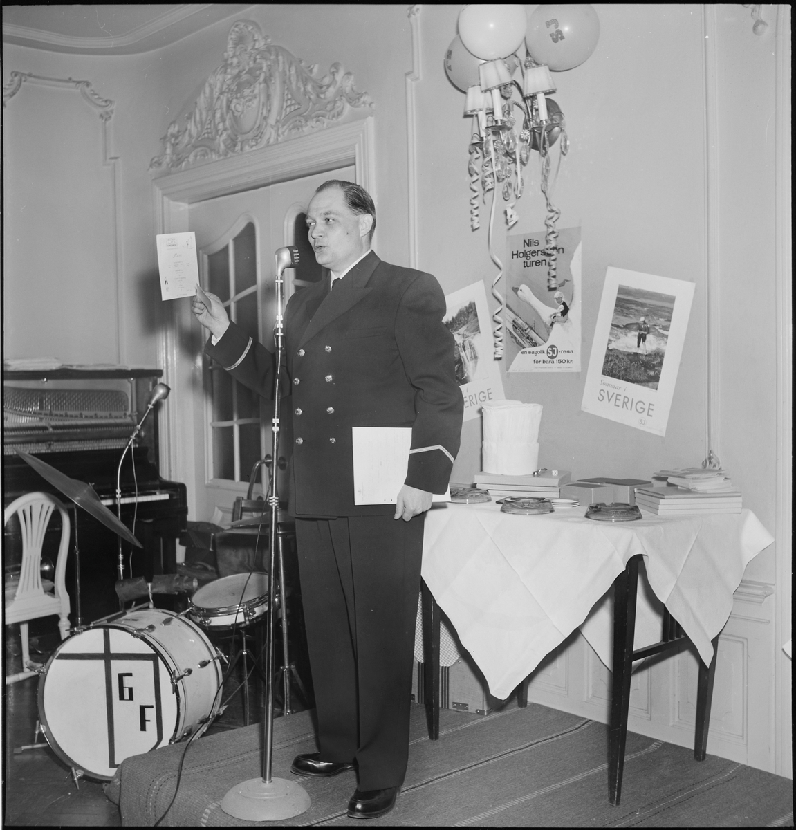 Tal under ett reklamevenemang för Nils Holgersson turen som Statens Järnvägar anordnade.