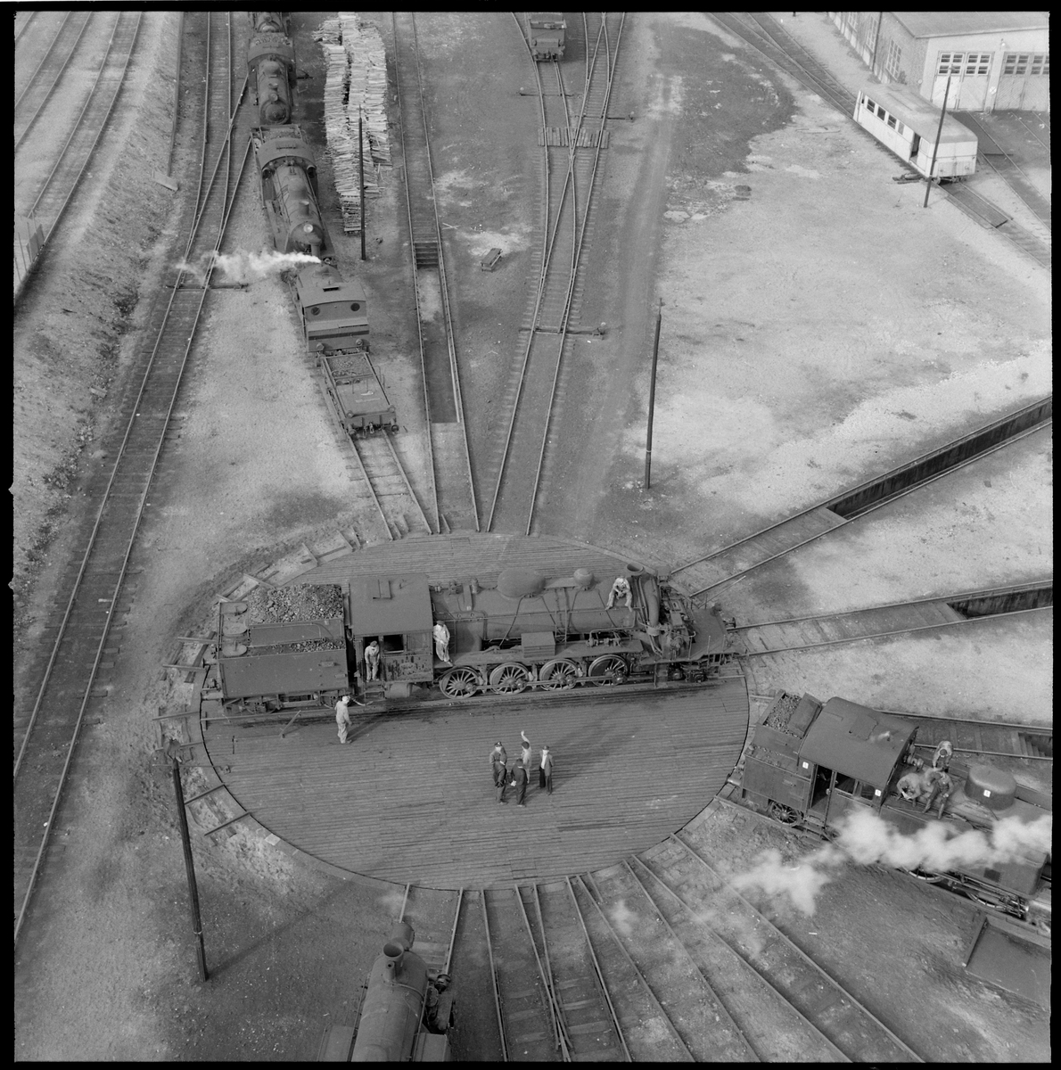 Ånglok på bangård. Trafikaktiebolaget Grängesberg - Oxelösunds Järnvägar, TGOJ M3t 73.