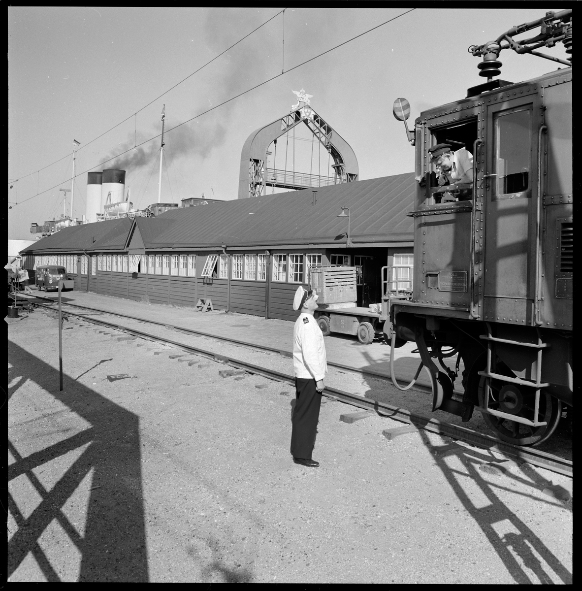 Titel: Vid Malmö tågfärjeterminal. Statens Järnvägar, SJ Da lok.