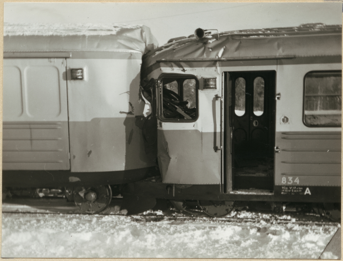 Rälsbuss Statens Järnvägar, SJ YC06 834 efter olyckan på Koskivaara station 1955.