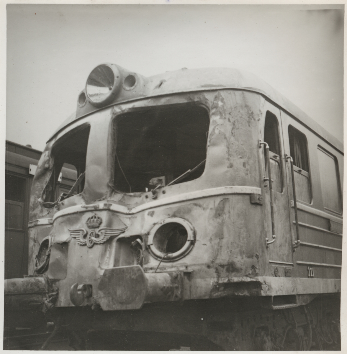 Statens Järnvägar, SJ Xoa5 221 skador efter olycka vid hållplats Arket 1951.