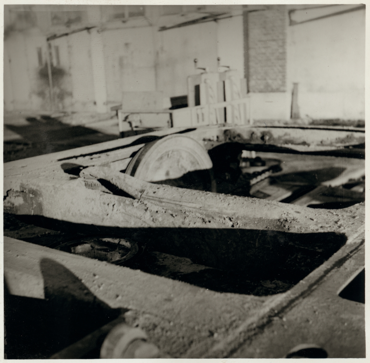 Titel: Skador på A-vagnens löpboggie efter olycka vid hållplatsen Arket 1951.