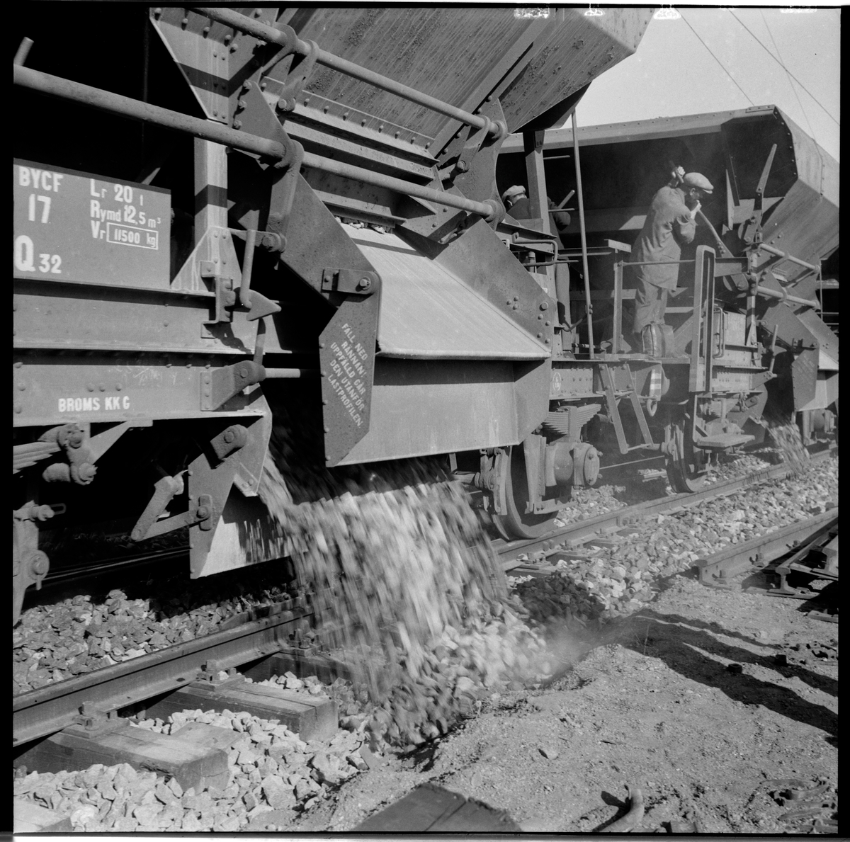 Dubbelspårsarbete, makadamisering av spår. SJ Q32 17.