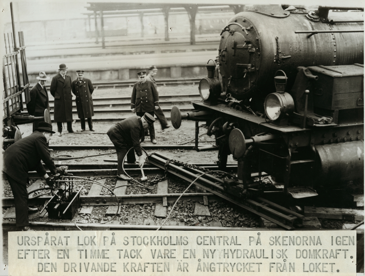 Statens Järnvägar, SJ K 1160, bärgning av lok på Stockholms Centralstation november 1931.