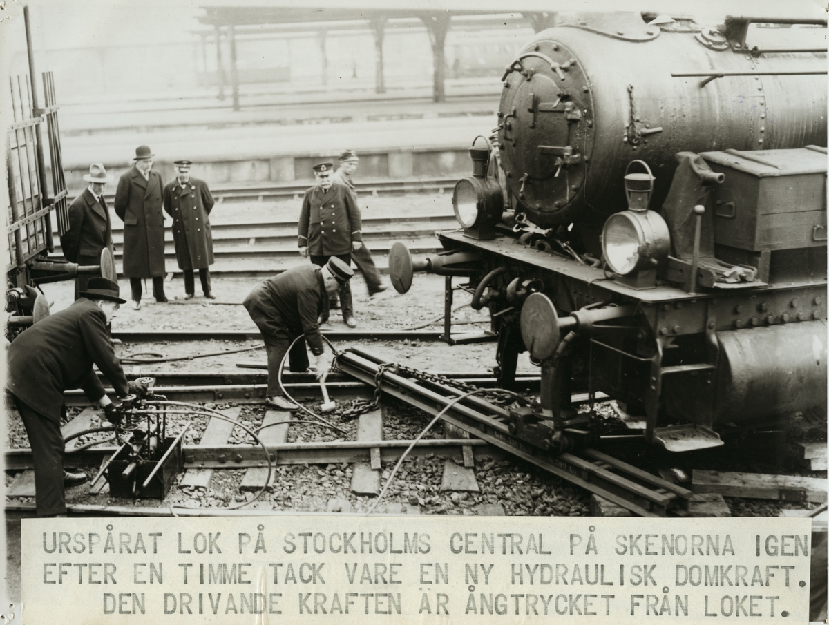 Statens Järnvägar, SJ K 1160 bärgning av lok på Stockholms Centralstation november 1931.