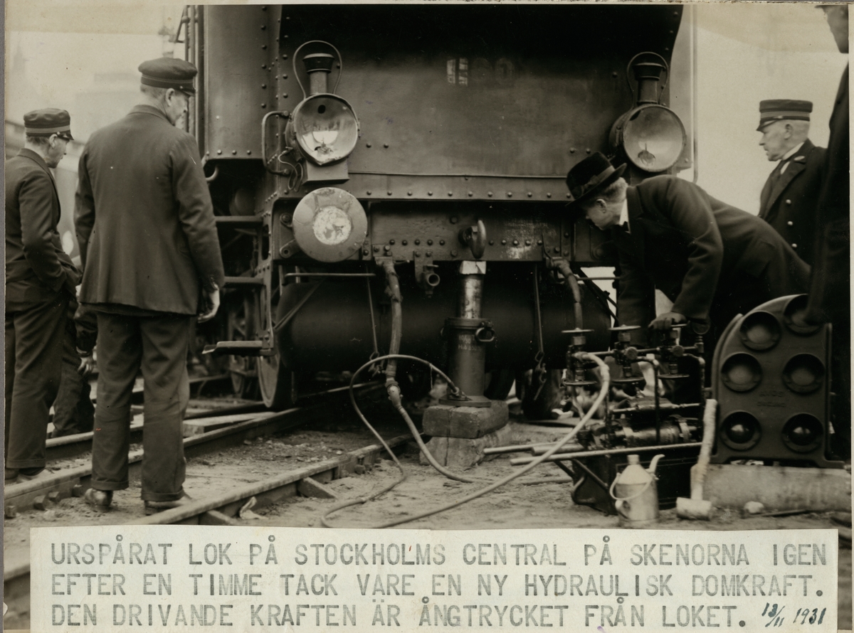 Statens Järnvägar, SJ K 1160, bärgning av lok på Stockholms Centralstation november 1931.