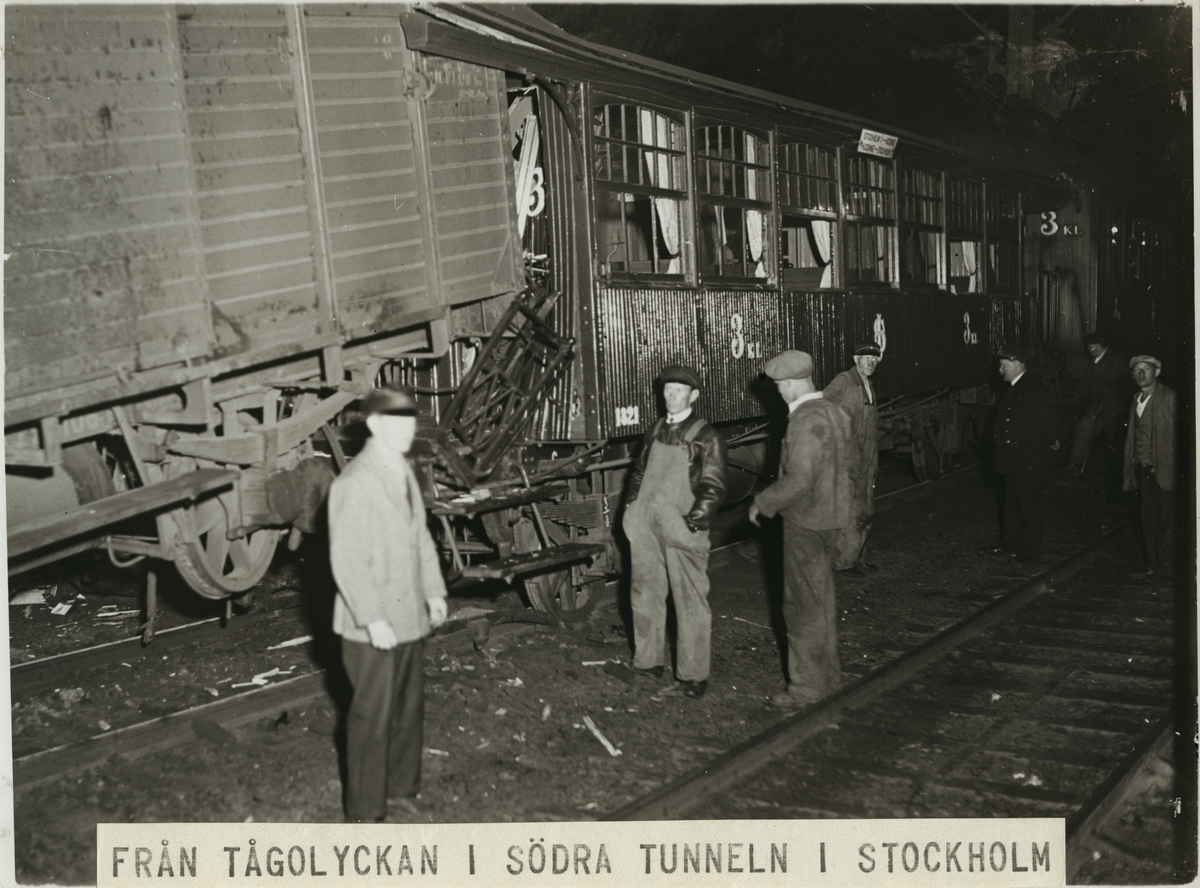 Statens Järnvägar, SJ C4 1821, kollision mellan två vagnar i Södertunneln i Stockholm.