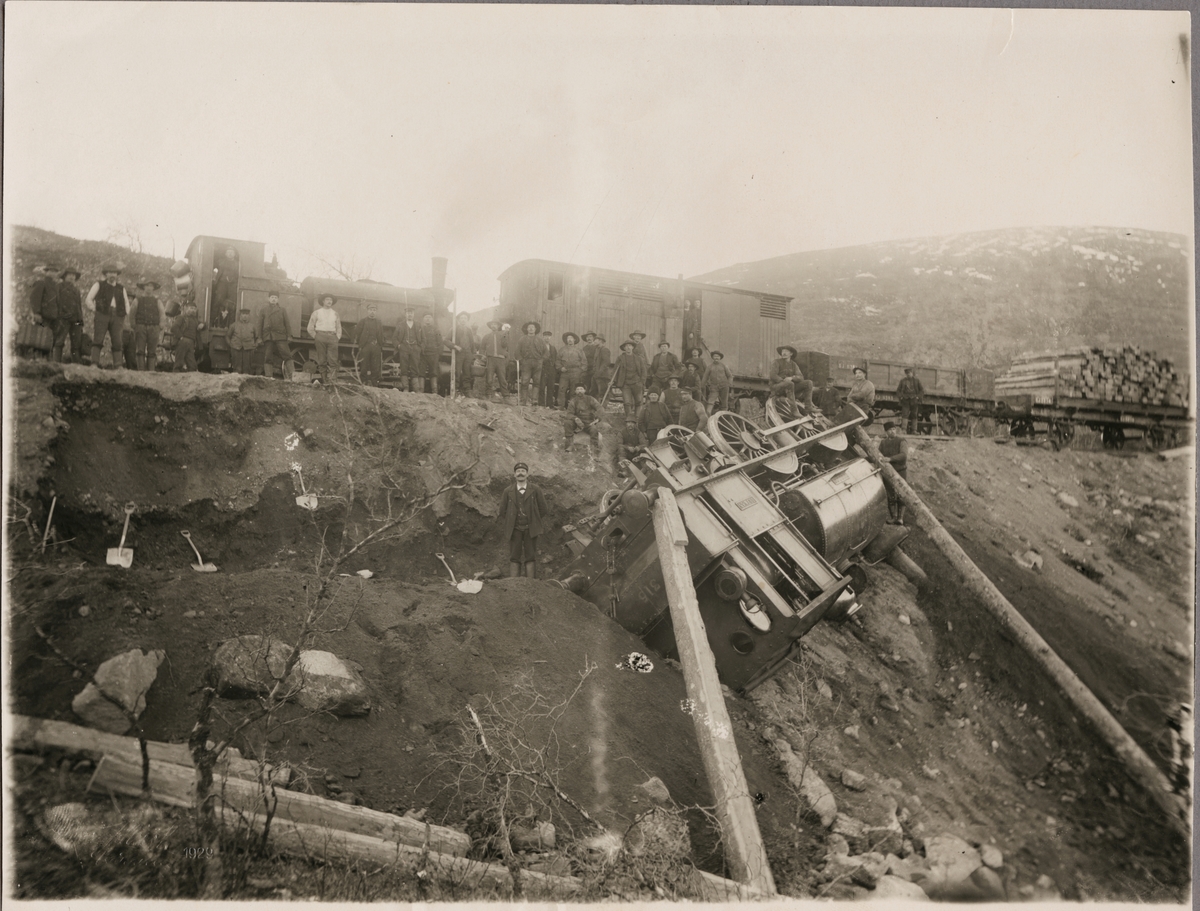 Statens Järnvägar, SJ Pb 315 "Dufvan" har spårat ur på linjen mellan Bergfors och Torneträsk september 1900.