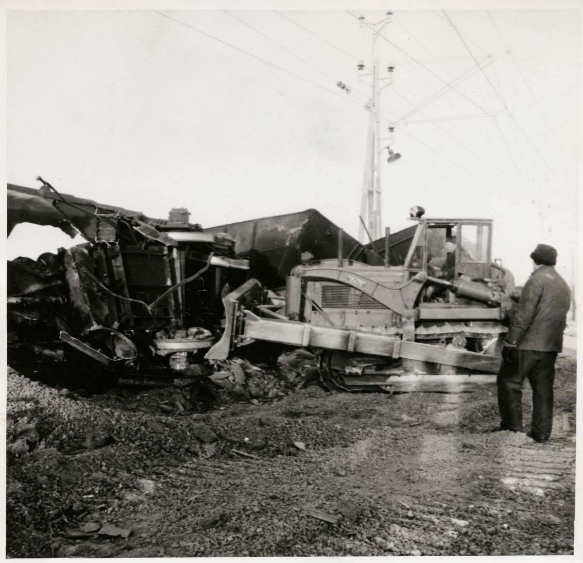 Schaktmaskin i arbete efter olycka i Nattavaara september 1953.