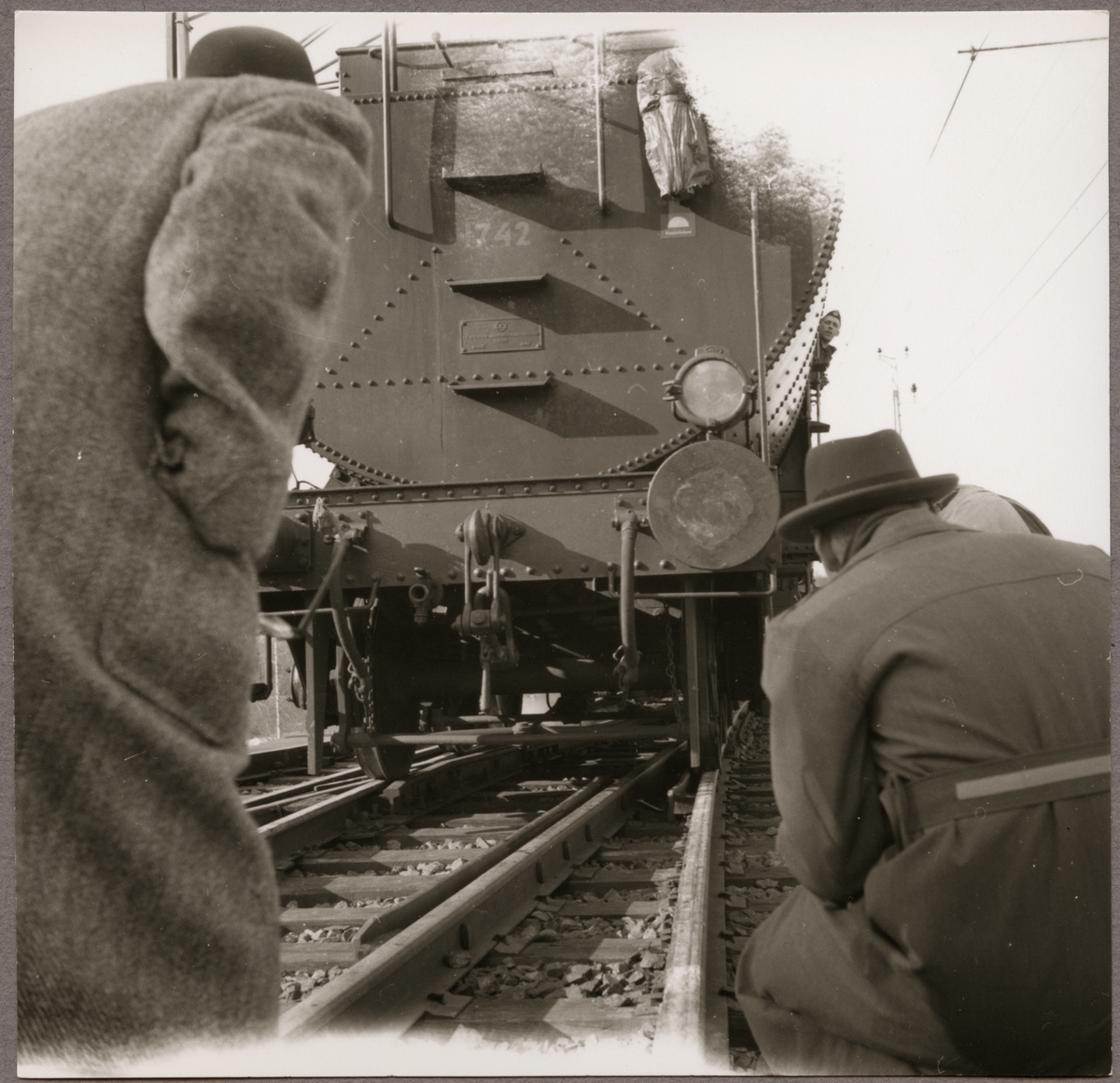 Ånglok på växelkorsning efter urspårning i Simeå mars 1961.
