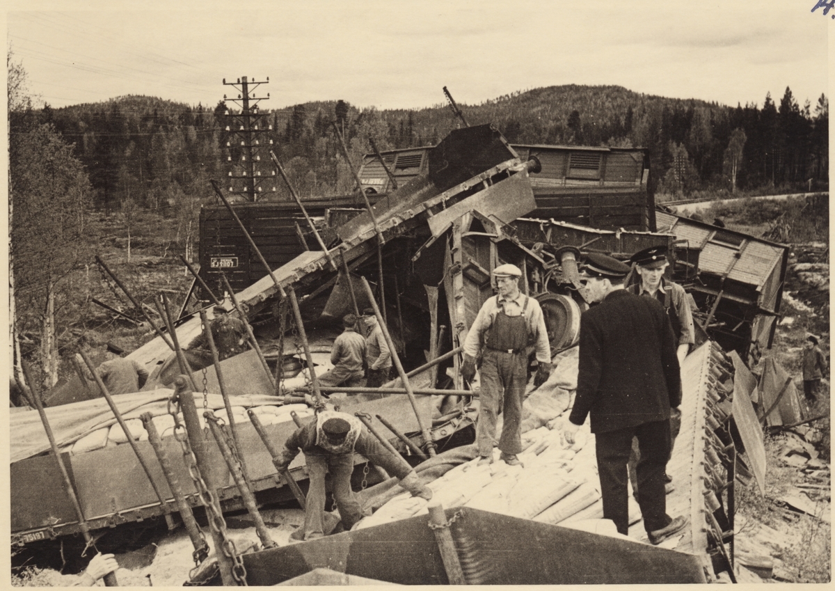 Urspårning vid Älvho 1950. Lossning av cement.