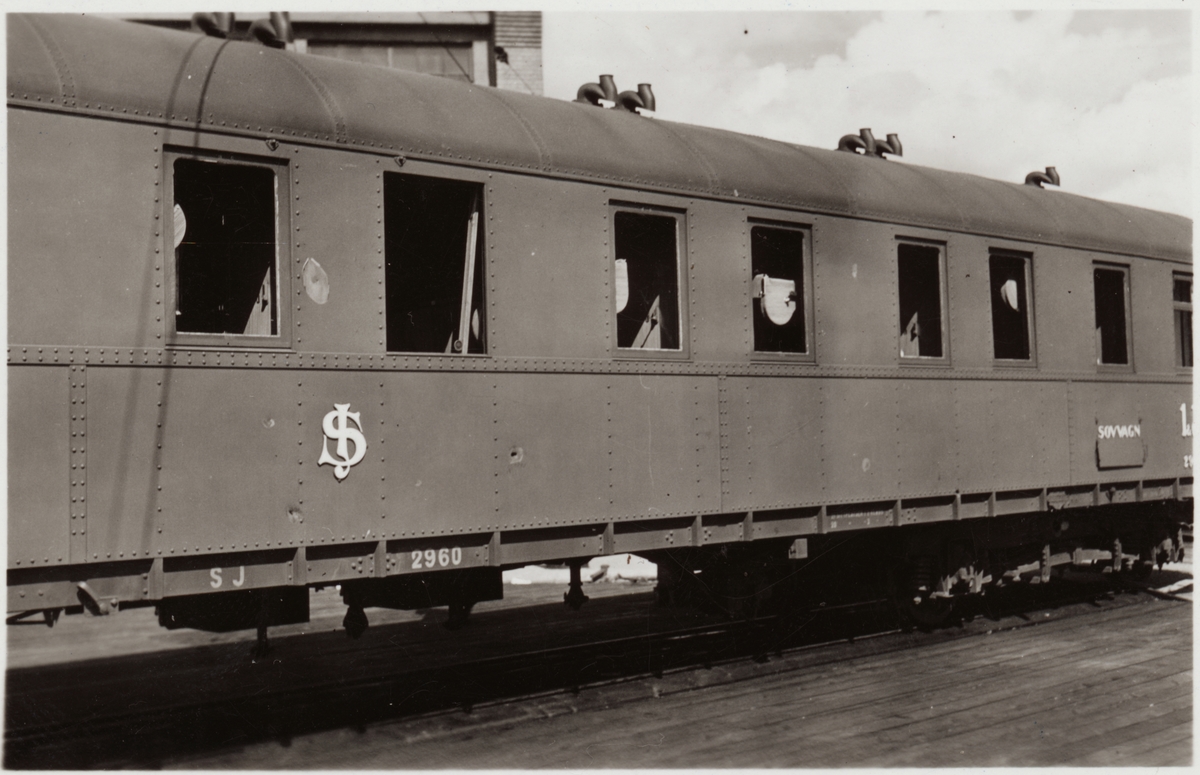Bilder på Statens Järnvägar, SJ ACo4 2960 efter bombning i Narvik.