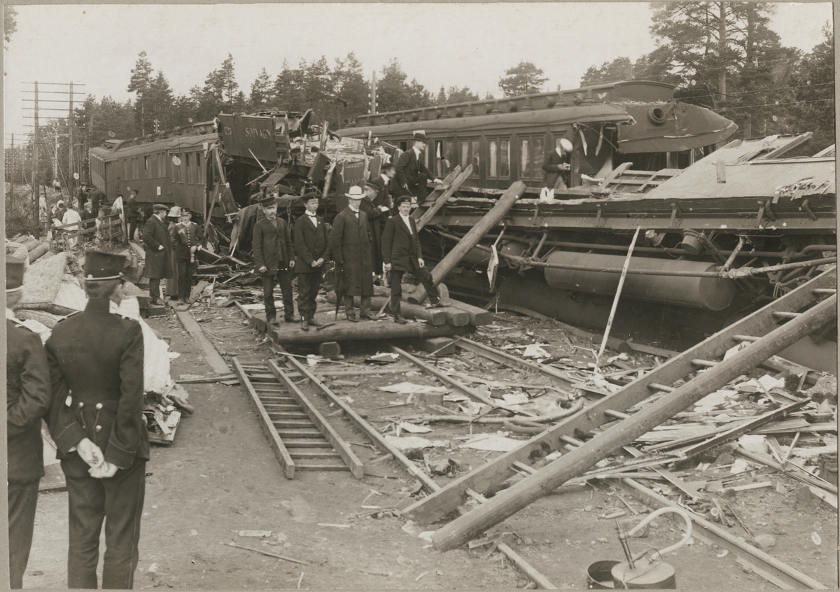 Olycksplatsen i Malmslätt där Statens Järnvägar, SJ Ao1 1723 och SJ Ao4 2002 är några av de drabbade vagnarna vid kollisionen.