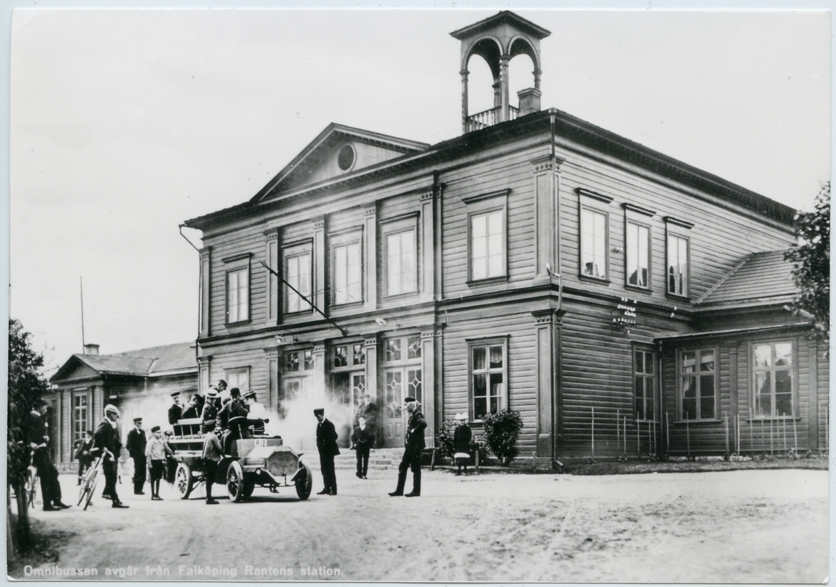 Omnibussen för avgång, utanför Falköping Rantens järnvägsstationen.