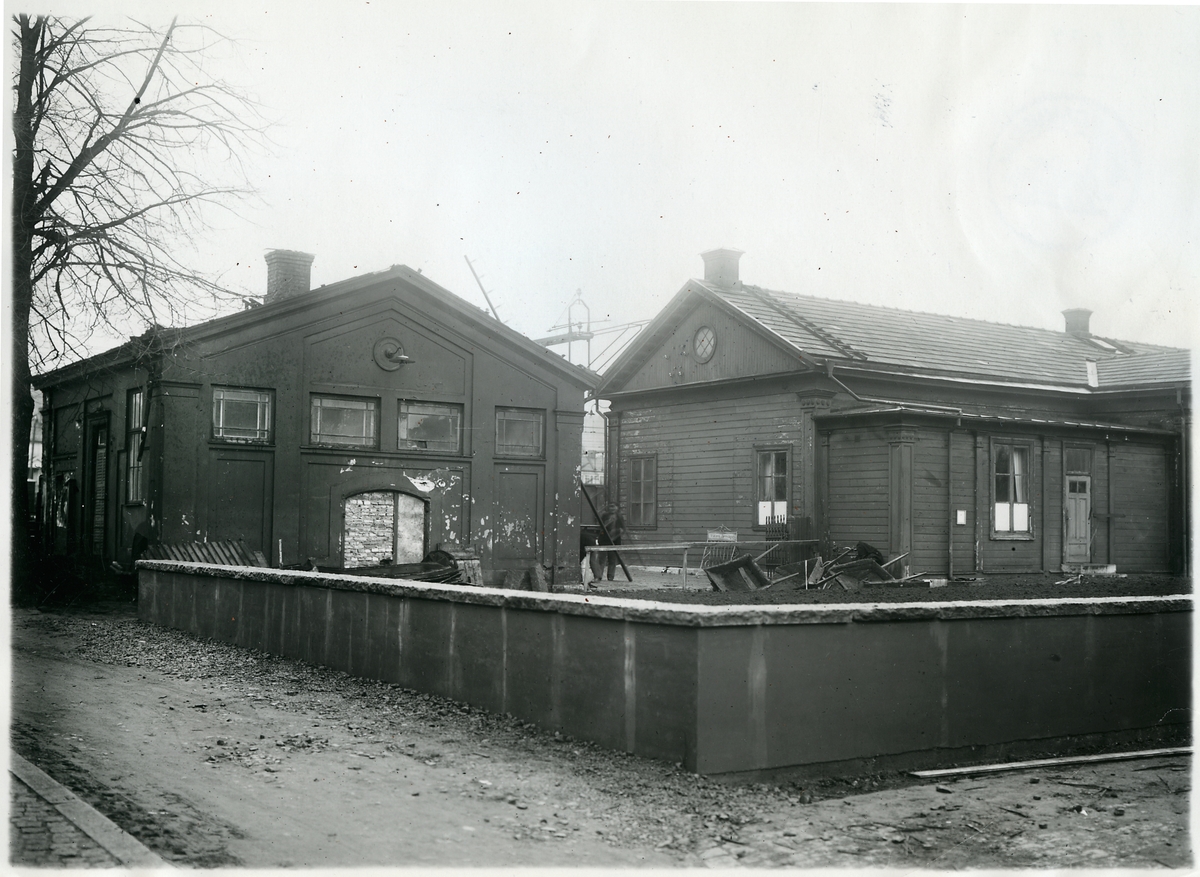 Exteriör av lampahuset i södra ändan av stationshuset i Falköping.