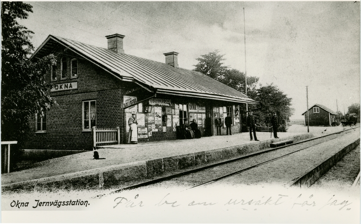 Öppnad 1872. Envånings stationshus i sten. På senare år har stationshuset ombyggts och därvid fått en andra våning. Dubbelspår byggdes österut till Eksund 1920 och västerut till Norsholm 1921. Järnvägen elektrifierades 1932.