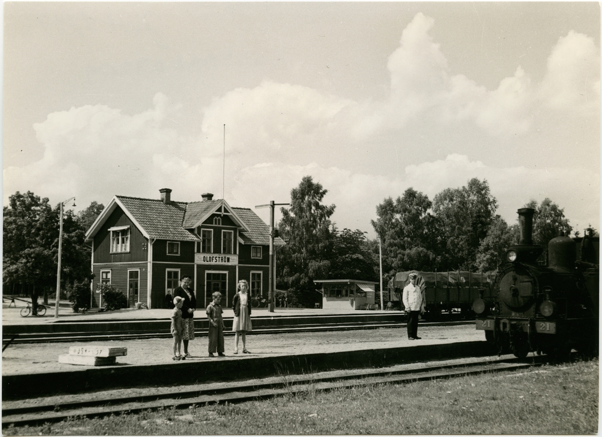 Sölvesborg - Olofström - Älmhults Järnväg öppnades 1901 för allmän trafik. Samma år anlades station. Då byggdes en- och enhalvvånings stationshus i trä. Järnvägen förstatligades 1942. I slutet av 1950-talet ersattes stationshuset med en nybyggnad öster om banan. Stationen och hela bangården är anpassade efter industriomgivningen bland annat Svenska stålpressnings, plåtpressverk, emaljeringsverk, träullfabrik, såg, kvarn och kraftverk. Persontrafiken lades ned 1984 och bandelen Sölvesborg - Olofström revs upp. Idag trafikeras bandelen Olofström - Älmhult med godståg från Volvo till Göteborg och gent samt tåg med skrot från Volvo av Stena Metall.