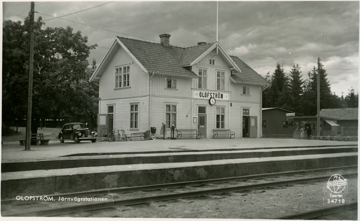 Sölvesborg - Olofström - Älmhults Järnväg öppnades 1901 för allmän trafik. Samma år anlades station. Då byggdes en- och enhalvvånings stationshus i trä. Järnvägen förstatligades 1942. På 1950-talet ersattes stationshuset med en nybyggnad öster om banan. Stationen och hela bangården är anpassade efter industriomgivningen bland annat Svenska stålpressnings, plåtpressverk, emaljeringsverk, träullfabrik, såg, kvarn och kraftverk. Persontrafiken lades ned 1984 och bandelen Sölvesborg - Olofström revs upp. Idag trafikeras bandelen Olofström - Älmhult med godståg från Volvo till Göteborg och gent samt tåg med skrot från Volvo av Stena Metall.