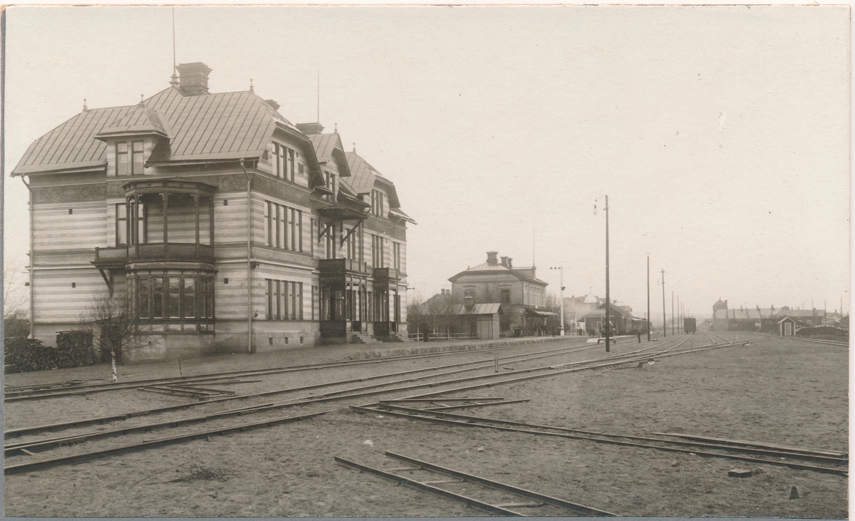 Till vänster Hotellet till höger stationshuset. lokstallarna till höger i bild.