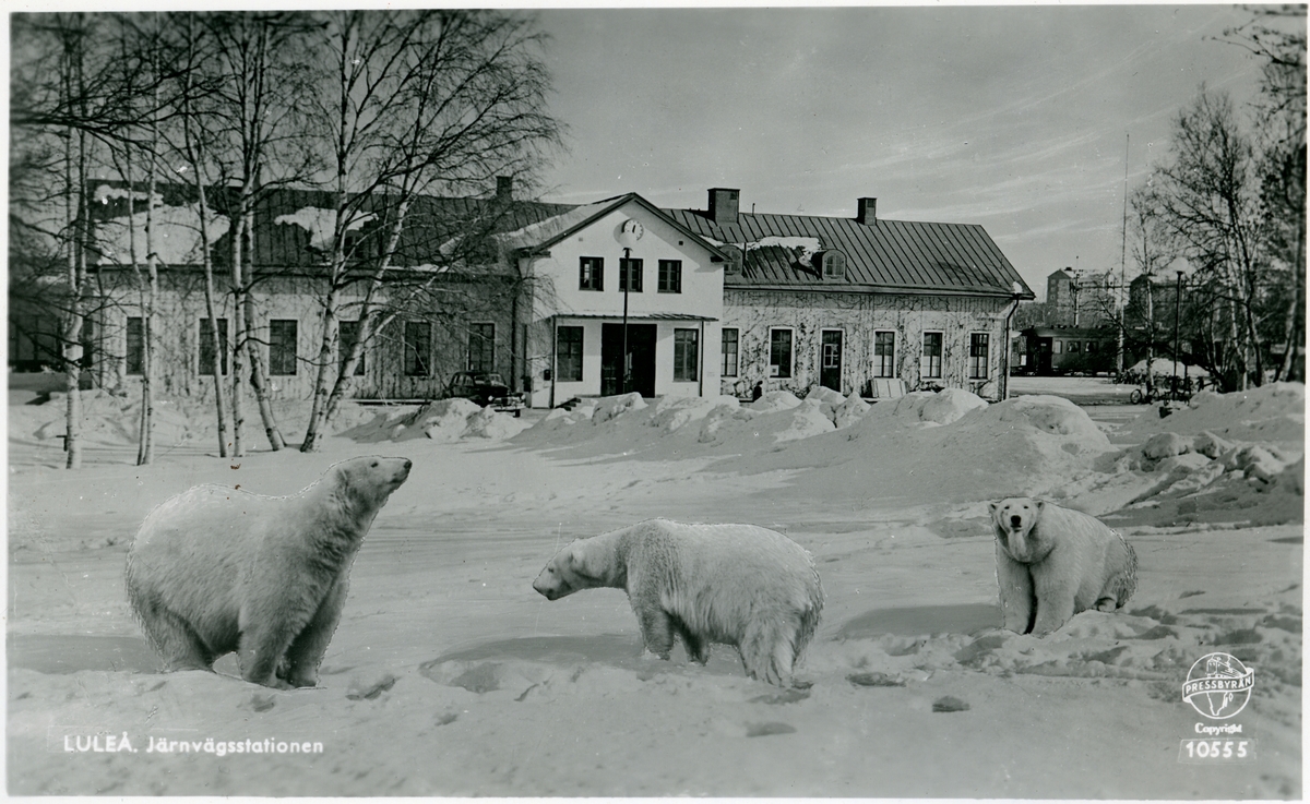 Luleå järnvägsstation med isbjörnar i ett fotomontage.