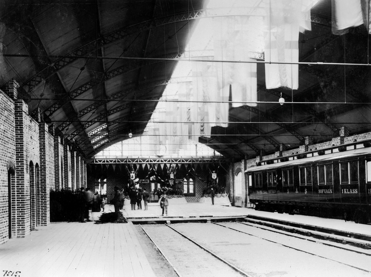 Malmö - Kontinentens Järnväg, MkontJ, Oscar II besök. Vagnen är SJ AB01 i nummerserien 1200 vilka levererades med början 1898.