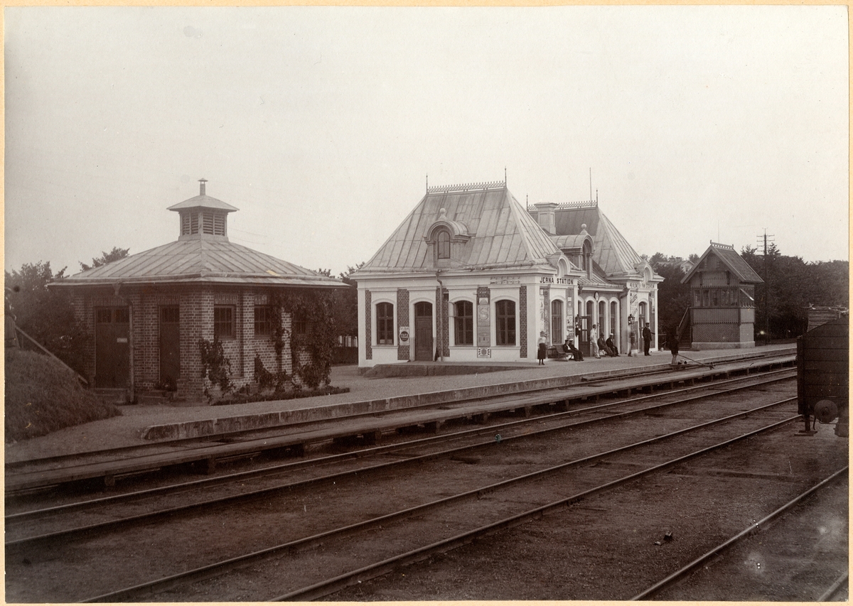Statens Järnvägar, SJ Järna station "Jerna station" ca:kl 7 År 1881 .Året för Kung Gustafs giftermål. Foto Bröderna Bresky mästersamuelsgatan 71 Stockholm. Orginalbild:M2 113/37 Gåva av Stationsinspektor NAW. Hammarsköld, Järna 18x24 (157x221)