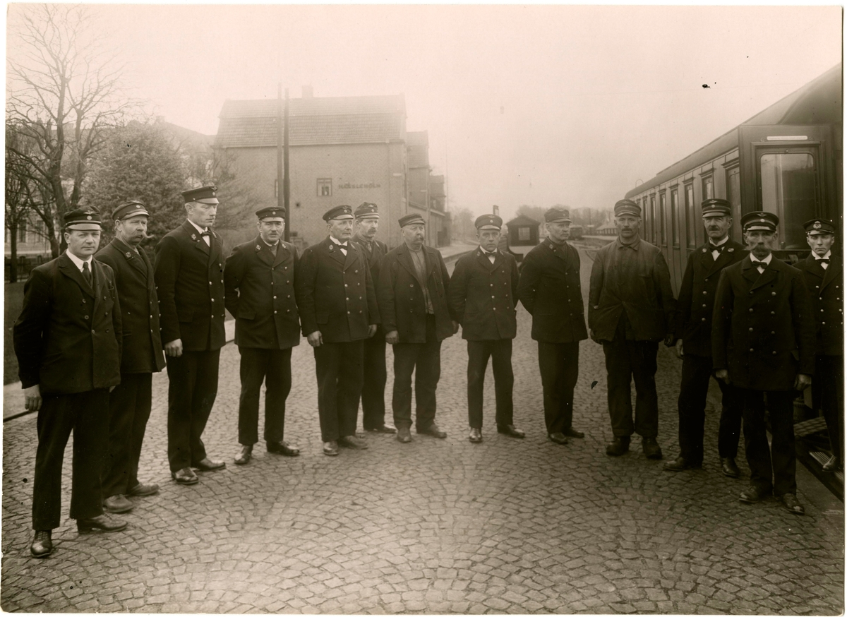 Plattform 1, norr om stationshuset: Vagnkarlarlar:J.Granlund, L.Sjögren, H.Bondesson, H Strid, M.Erlandsson, S.Hansson, A.Nilsson, N.A.Nilsson och G.Nyberg,