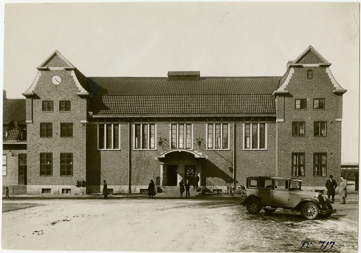 Tvåvånings stationshus i sten, byggt 1863. Tillbyggt 1876 och 1890 . Nytt stationshus i tegel 1919, invigt 1921 ,1914 uppfördes, som ett provisorium under ombyggnadstiden, en stationsbyggnad söder om den nuvarande. Den ligger år 1991 kvar och används av Postverket . Vid södra infarten låg SJ:s växtdepå. Ett äldre lokstall ersattes av ett sjuportars med vändskiva