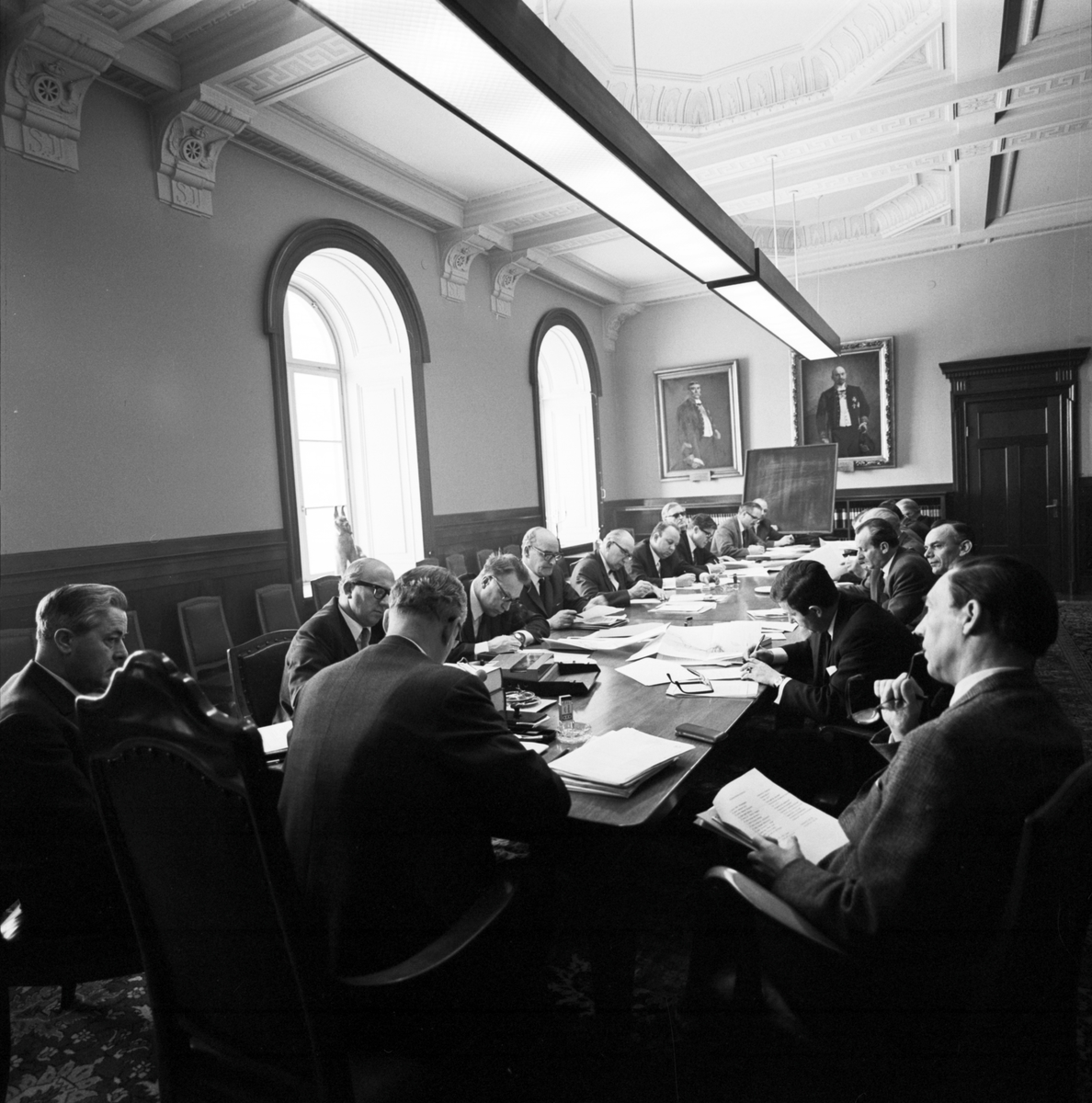 Generaldirektör Upmark, CKA Ekelund och Holvid i plenisalen med tyska journalister