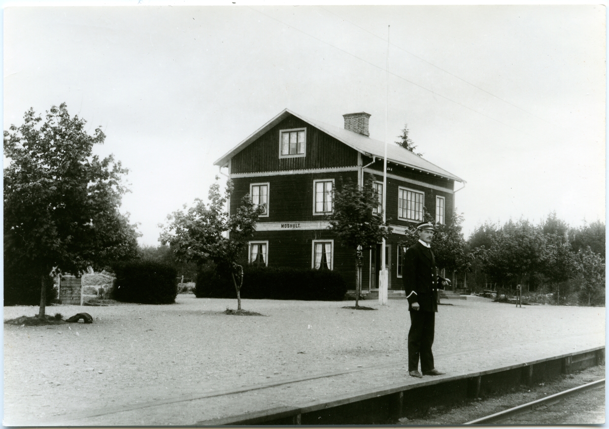 Stationshuset i Moshult, Stationsinspektor poserar utanför.
