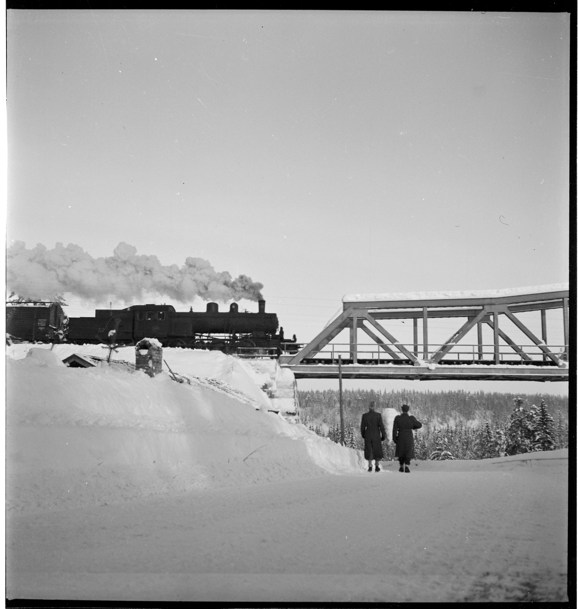 Ånglok passerar över bro.
