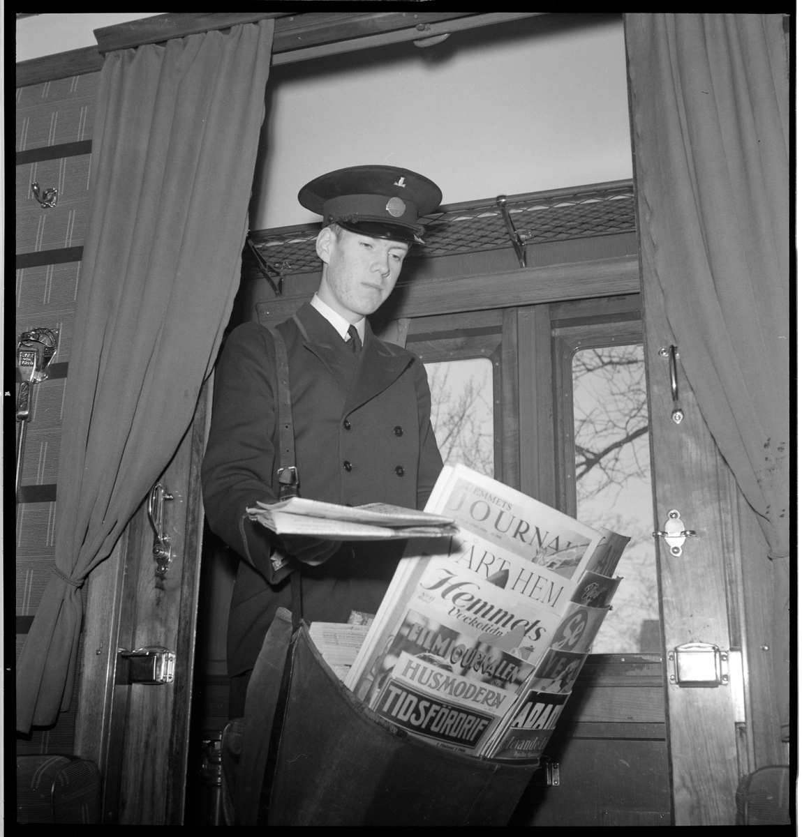 Tidningar delas ut på tåget.