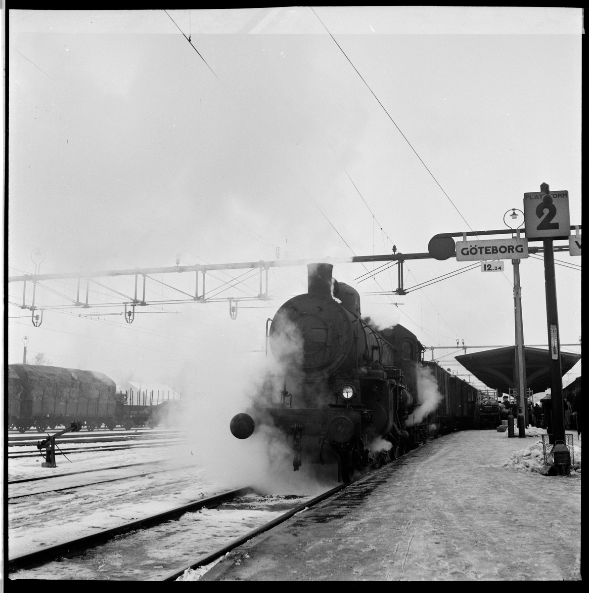 Bergslagernas Järnvägar, BJ B3-lok med tåg vid Ludvika station.