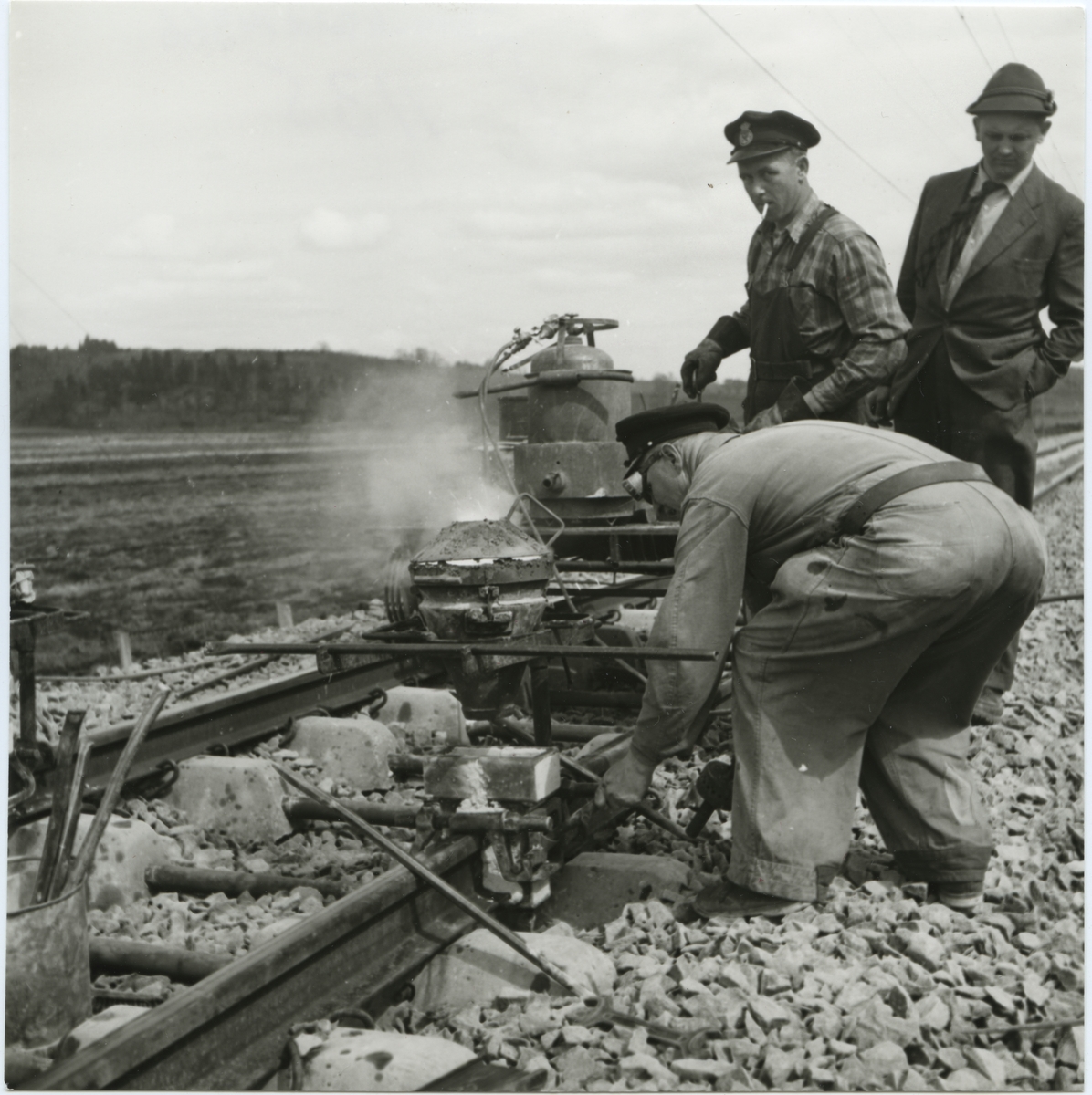 Slipersbyte utmed banan på sträckan Tranås - Gripenberg.