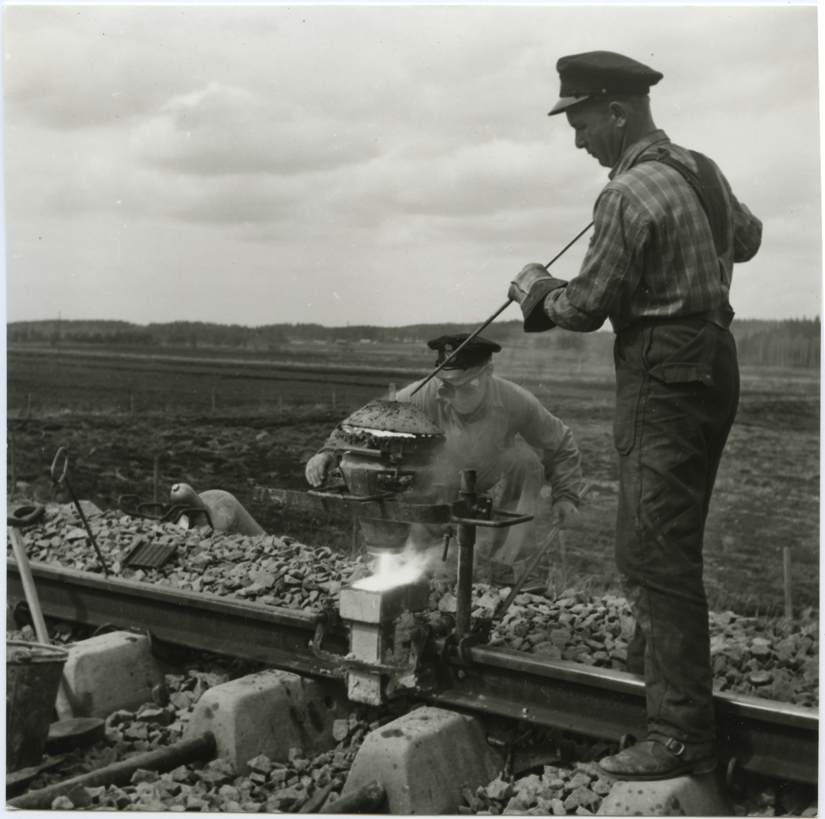 Spårsvetsning vid banläggning, på sträckan Tranås - Gripenberg.