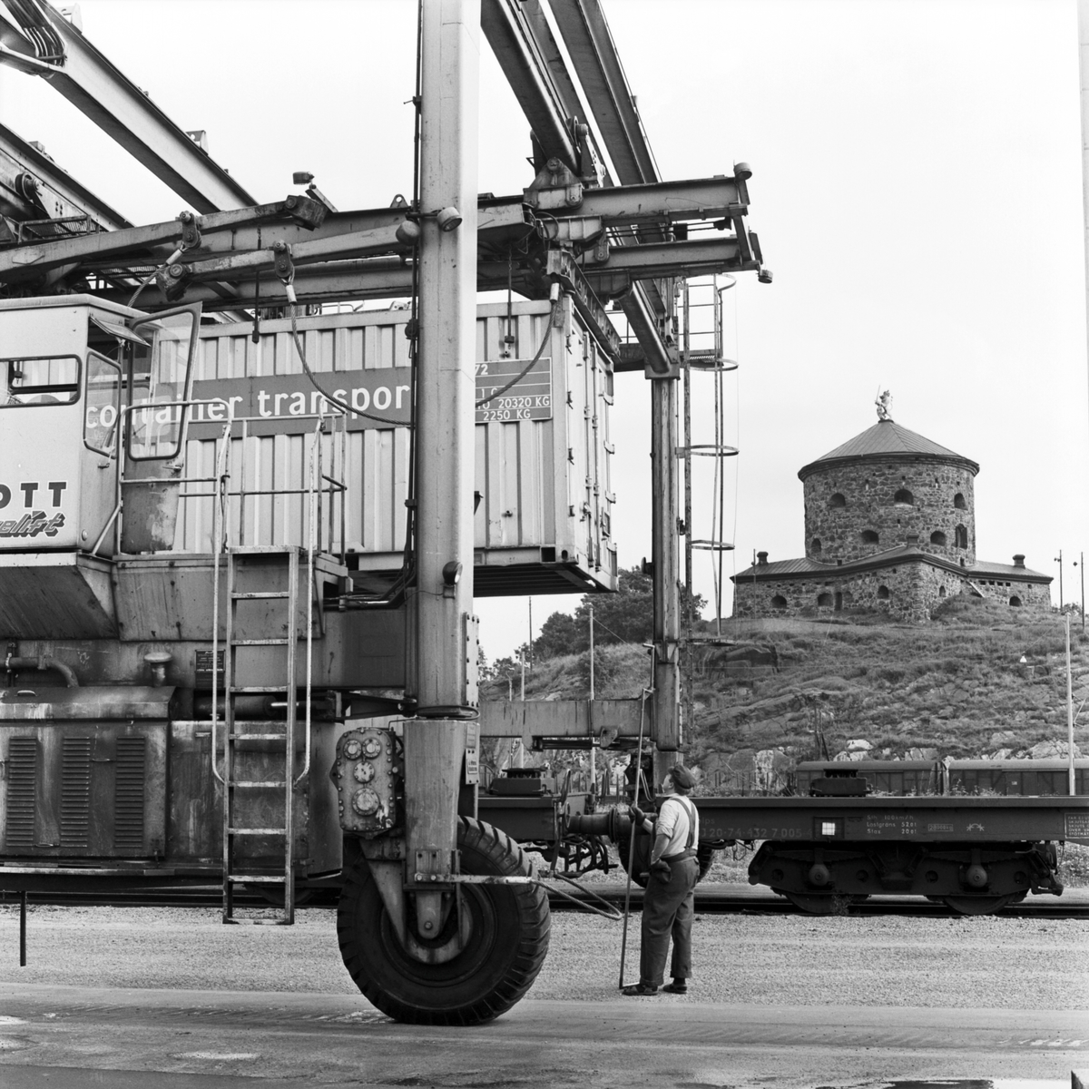 Göteborg Norra, containerterminal. I bakgrunden syns Skansen lejonet. Göteborg