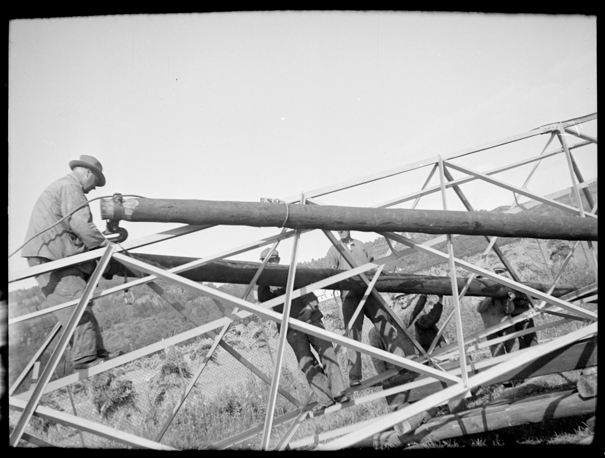 Linjen mellan Sävenäs - Partille, resning av belysningsmast.