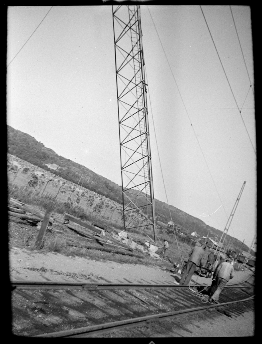 Linjen mellan Sävenäs - Partille, resning av belysningsmast.