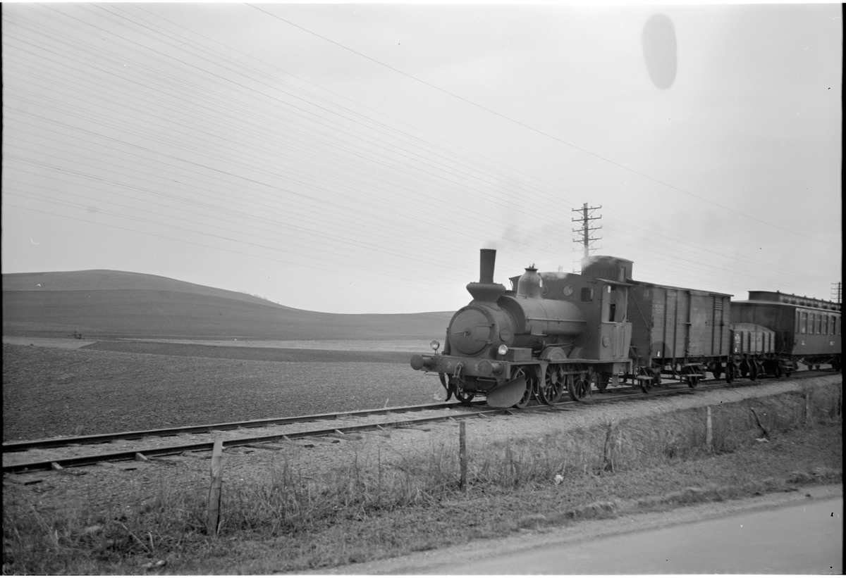 Malmö - Genarps Järnväg, MGJ lok 2 "Genarp" med tåg någonstans längs linjen.