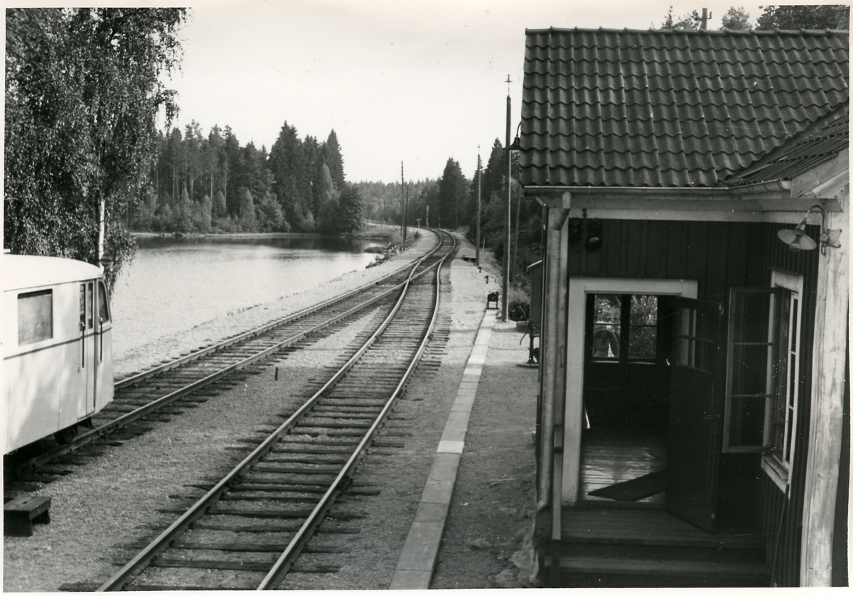 Harsjön, söderut. Bilden tagen inför elektrifieringen av Trafikaktiebolaget Grängesberg - Oxelösunds Järnvägar.