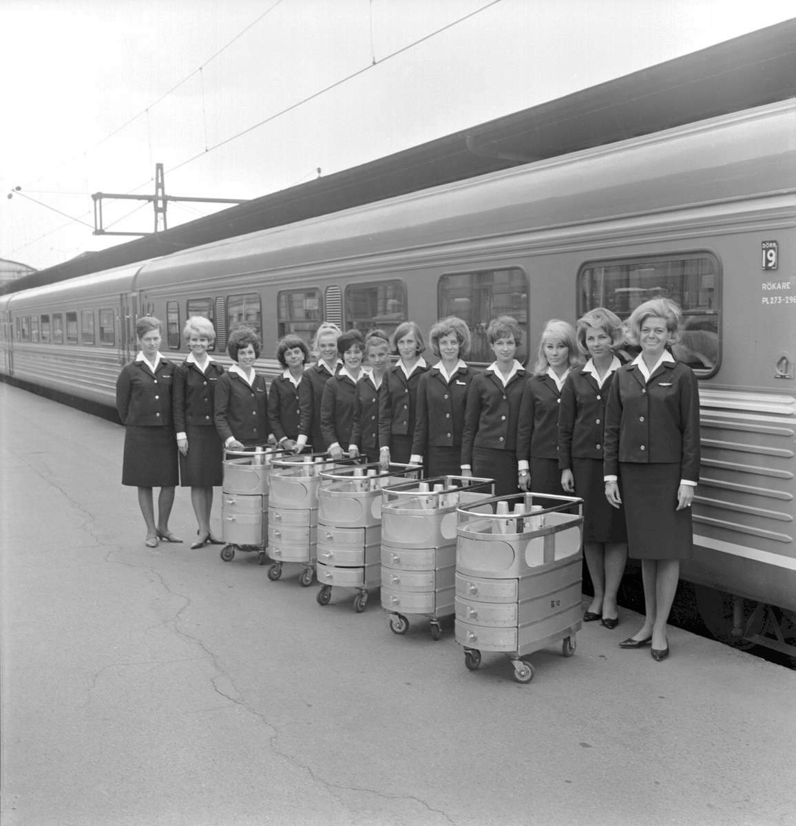 Trafikrestaurangvärdinnor och servitriser, Stockholm centralstation. Statens järnvägar SJ Y0a2 1 klass.