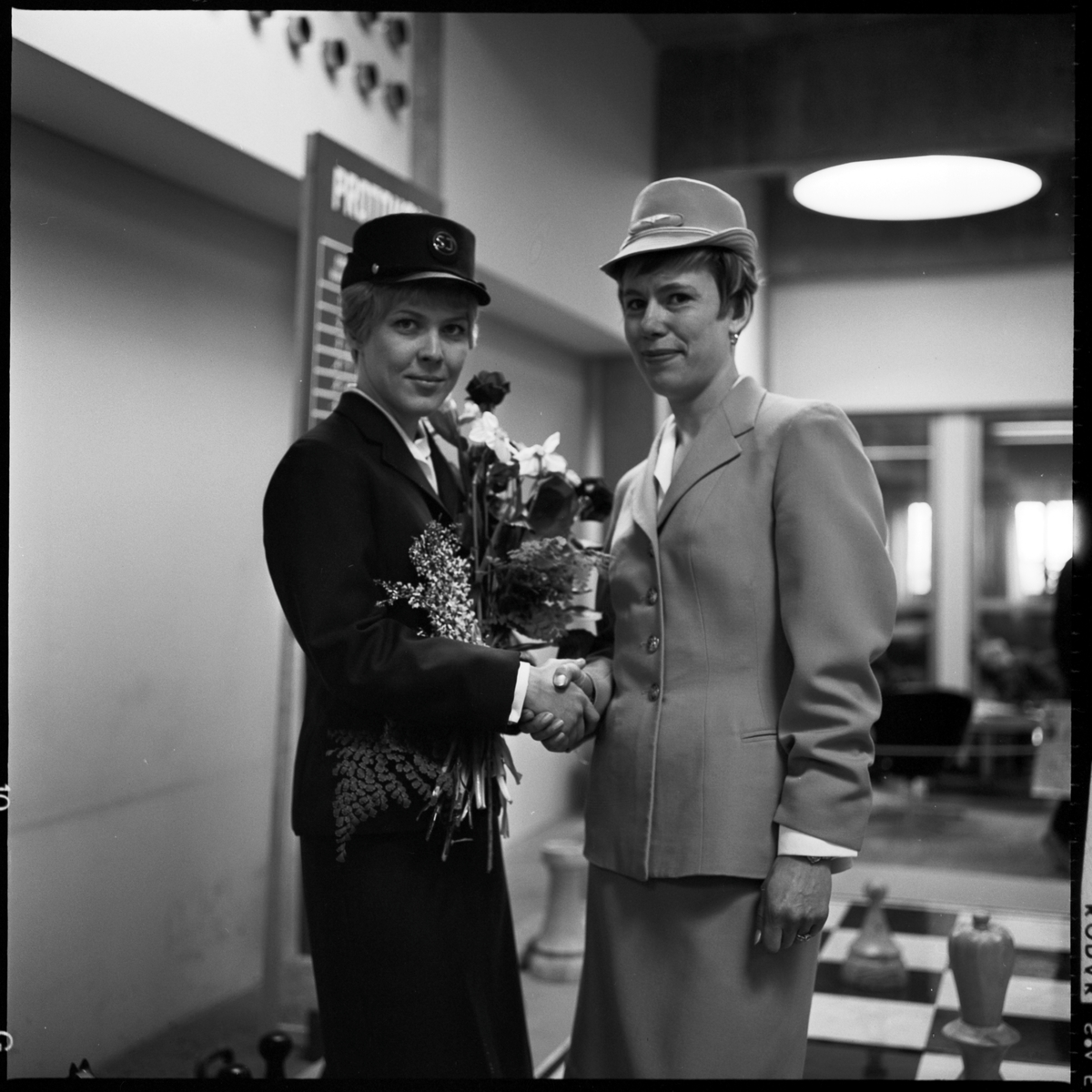 Stockholmsnytts Radioschack, mellan Statens Järnvägar SJ och Stockholms Spårvägar SS. (SL) Foto från Sveriges Radios enrte´hall.