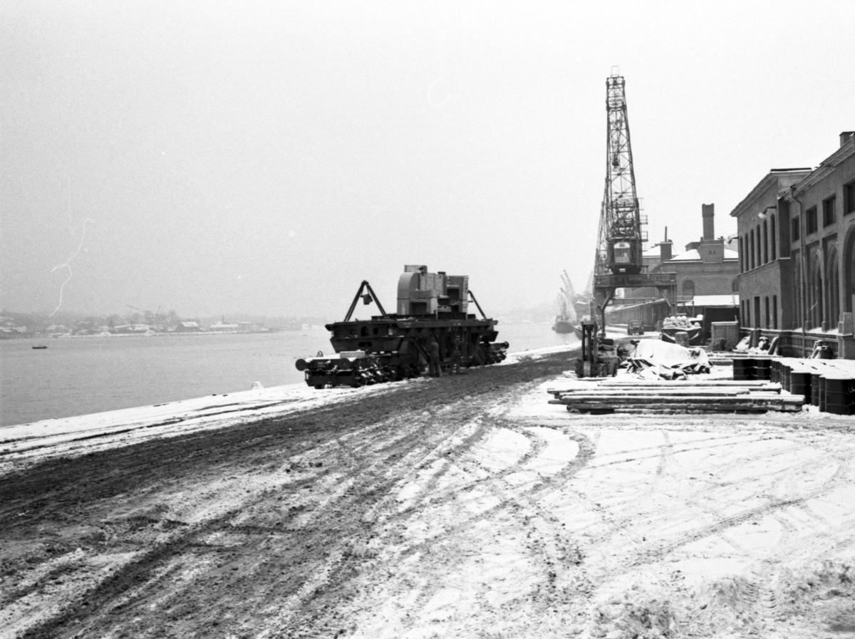 Titel: Lastning i Stadsgården. Transport till Norrbottens Järnverk Luleå. Statens Järnvägar SJ Q23